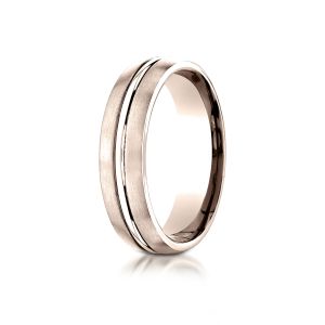 14k Rose Gold 6mm Comfort-fit Satin-finished With High Polished Center Cut Carved Design Band