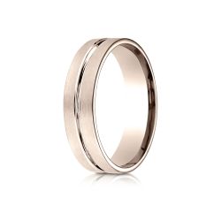 This 14 Karat Rose 6mm Comfort-fit Satin-finished Carved Design Band Features A High Polished Center Cut For A Perfect Balance Of Style And Class.