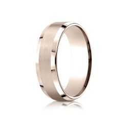 This 14 Karat Rose 7mm Comfort-fit Satin-finished Carved Design Band Features A High Polished Beveled Edge For A Perfect Balance Of Style And Class.