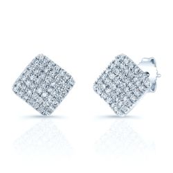 Beautifully Accented 14k White Gold Square Shape Stud Earring With Exquisite Round Diamond Pave Setting With 0.70 Ctw