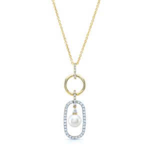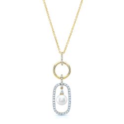 14k Yellow Gold Freshwater Pearl & Diamonds Pendant