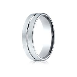 This 18 Karat White 6mm Comfort-fit Satin-finished Carved Design Band Features A High Polished Center Cut For A Perfect Balance Of Style And Class.