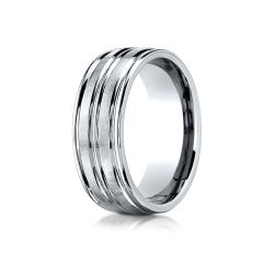 This Incredible 18 Karat White 8mm Comfort-fit Satin-finished Carved Design Band Features A High Polished Round Edge And Center Trim That Give Subtle Consistency Of Style And Form.
