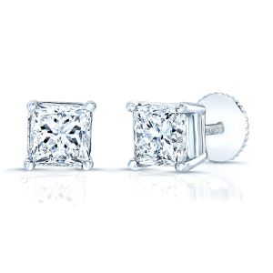 Stunning Platinum 4 Prong Studs With 2 Princess Cut Diamonds Weighing 2.21ctw