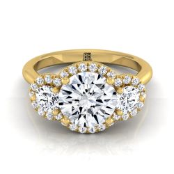 18K Yellow Gold Round Brilliant Diamond French Pave Diamond Three Stone Engagement Ring -1/2ctw