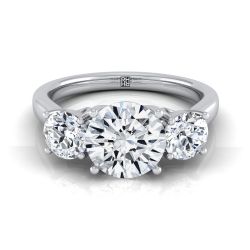 18K White Gold Round Brilliant Classic Three Stone Diamond Engagement Ring -5/8ctw