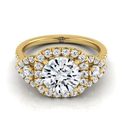 18K Yellow Gold Round Brilliant Diamond Delicate Three Stone Halo Pave Engagement Ring -5/8ctw