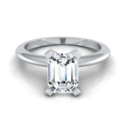 18K White Gold Emerald Cut Classic Low Base Solitaire Engagement Ring