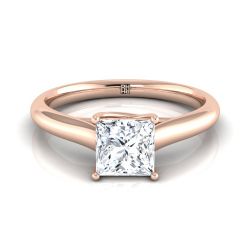 14K Rose Gold Princess Cut Rounded Classic Comfort Fit Solitaire Ring