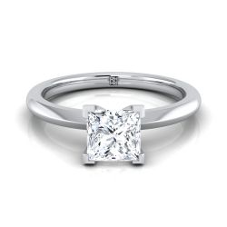 A Classic Statement Of Style, This Princess Cut Solitaire Engagement Ring Showcases A Modern Knife Edge Shank And 4 V-prong Center Setting In Platinum