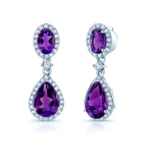 Exquisite Elegance Defines These 14k White Gold Earrings Adorned With A Classic Oval And Pear Shaped Amethyst Gemstones Surrounded By Brilliant Cut Diamonds (h-i/vs 0.33 Ctw) Beautifully Pave Set In A 14k White Gold Setting.