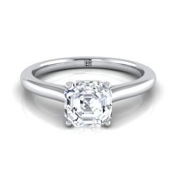 14K White Gold Asscher Cut Pinched Comfort Fit Claw Prong Solitaire Engagement Ring