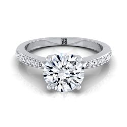 18K White Gold Round Brilliant Diamond Tapered Pave Engagement Ring -1/8ctw