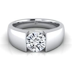 18K White Gold Round Brilliant Wide High Polish Band Tension Set Solitaire Engagement Ring
