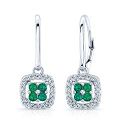 Feel Lucky Donning This Gemstone And Diamond Dangle Clover Earrings. This 14 Karat White Gold Leverback Earrings Showcase 1.8 Mm Round Created Emeralds Surrounded By Diamond Accent.