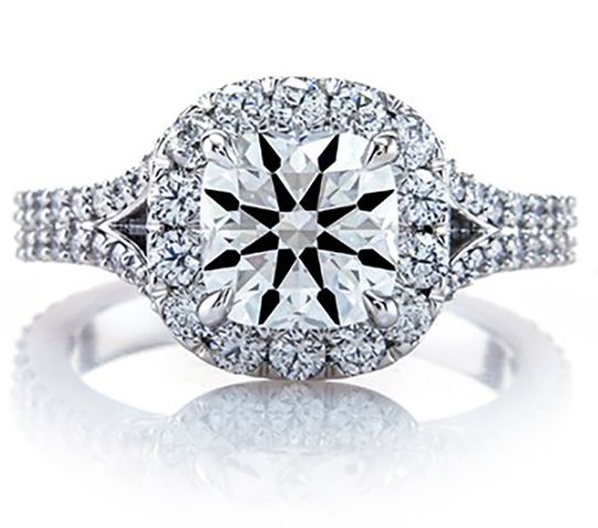 ROSI generally recommends a color grade of H and a clarity grade of VS2 for cushion cut diamonds with an antique look or a hearts and arrows look. If you prefer a crushed ice style cushion, this cutting style tends to concentrate color so you may want to upgrade to a G color grade.