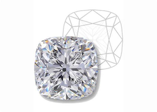 There is more variety in cushion cut diamonds than in any other diamond shape. Each cushion cut diamond has its own individual personality. There are square cushions and rectangular cushions, depending on the length to width ratio. There are chunky cushions and antique cushions with fewer larger facets and cushion cut diamonds with extra small facets. Which style you prefer is up to you but you’ll likely never meet anyone who has a cushion diamond that looks exactly like yours.