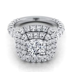 14K White Gold Cushion Diamond Bold and Fancy Double Halo French Pave Engagement Ring -2ctw