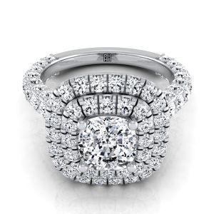 Platinum Cushion Diamond Bold and Fancy Double Halo French Pave Engagement Ring -2ctw