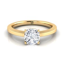 18K Yellow Gold Cushion Beveled Edge Comfort Style Bright Finish Solitaire Engagement Ring