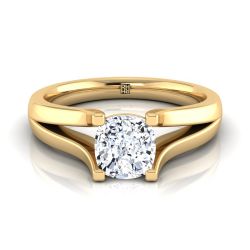 14K Yellow Gold Cushion Modern Split Shank Solitaire Engagement Ring