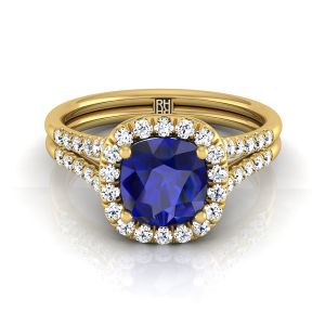 An Elegant Statement Of Style, This Cushion Cut Sapphire Center And Diamond Halo Ring With Double Row Shank Showcases Brilliant Cut Diamonds (h-i/vs 0.40ctw) Beautifully Set In A Classic 14k Yellow Gold Setting.