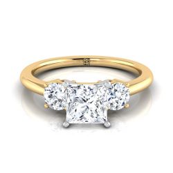 18K Yellow Gold Princess Cut Diamond Perfectly Matched Round Three Stone Diamond Engagement Ring -1/4ctw