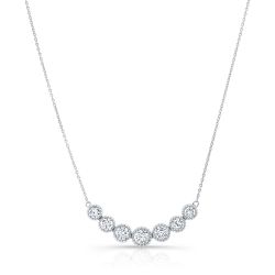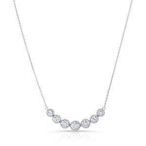 Lovely 7-stone Bezel-set Necklace With Millgrained Edging Showcases 1.65ctw Of Graduated Round Brilliant Diamonds Set In 14 Karat White Gold