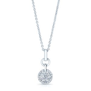 Dainty, Halo Pendant With Bar-link Bail With 0.25 Carats Of Round Brilliant Diamonds Set In 14k White Gold