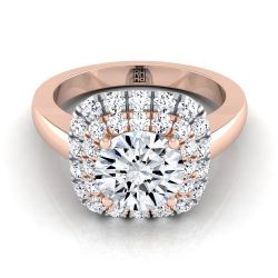 14K Rose Gold Round Brilliant Diamond Stair Step Double Halo Engagement Ring -5/8ctw