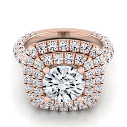 14K Rose Gold Round Brilliant Diamond Bold and Fancy Double Halo French Pave Engagement Ring -2ctw