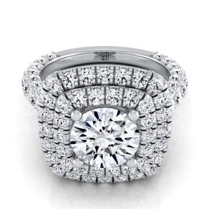 Platinum Round Brilliant Diamond Bold and Fancy Double Halo French Pave Engagement Ring -2ctw