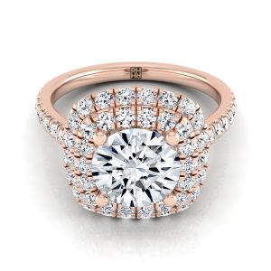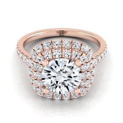 14K Rose Gold Round Brilliant Double Halo and Linear Pave Engagement Diamond Ring -3/4ctw