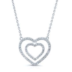 Alluring Double Heart Frame Necklace Has 0.33 Carats Of Round Brilliant Diamonds Set In 14k White Gold On A 16-inch Chain