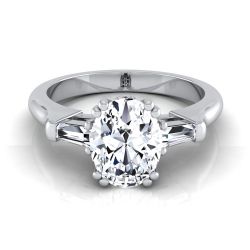 14K White Gold Oval Diamond Tapered Baguette Engagement Ring -1/4ctw