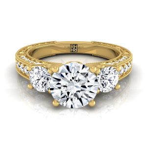 Diamond Engagement Ring With 3 Stone Vintage Inspired Pave Side Stone ( Rosie )
