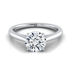 Platinum Round Brilliant Rounded Comfort Fit Secret Stone Solitaire Engagement Ring