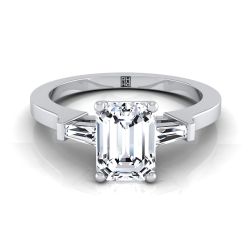 Platinum Emerald Cut Diamond Tapered Baguette Accent Engagement Ring -1/4ctw