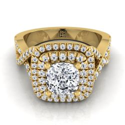 Diamond Engagement Ring With Halo Vintage Inspired Pave Side Stone ( Macy )