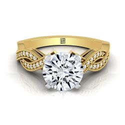 Charming Round Engagement Ring With Pave Infinity-style Millgrained Shank Showcasing Round Brilliant Diamonds (h-i/vs 0.20ctw) Beautifully Set In 14k Yellow Gold