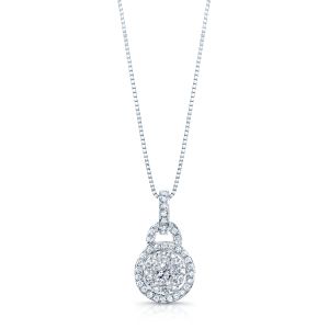 Diamond Halo Arched Hinge Pendant In 14k White Gold