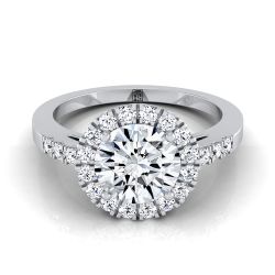 Classic And Elegant, This Brilliant Cut Diamond Halo Engagement Ring With A Pave Shank Showcases Brilliant Cut Diamonds (h-i/vs 0.33ctw) Beautifully Set In A Classic 14k White Gold Setting.