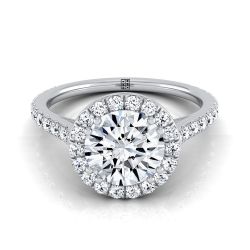 Classic And Elegant, This Diamond Halo Engagement Ring With A Pave Shank Showcases Brilliant Cut Diamonds (h-i/vs 0.45ctw) Beautifully Set In A Classic Platinum Setting.
