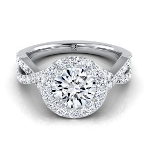 Platinum Round Brilliant Twisted Open Lattice Diamond Halo Engagement Ring -3/4ctw