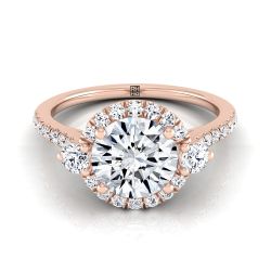 14K Rose Gold Round Brilliant Diamond Three Stone Delicate Halo Engagement Ring -1/3ctw