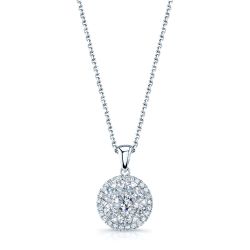 Classic Halo Style Pendant Set With 0.55 Carats Of Round Brilliant Diamonds In 14k White Gold
