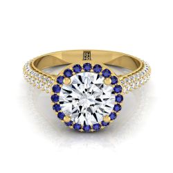 18K Yellow Gold Round Brilliant Micro-Pavé Halo With Pave Side Diamond Engagement Ring -7/8ctw