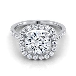 18K White Gold Round Brilliant Diamond Simple French Pave Halo Engagement Ring -1/2ctw