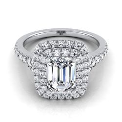An Elegant Statement Of Style, This Double Halo Emerald Cut Pave Engagement Ring Showcases Brilliant Cut Diamonds (h-i/vs 0.50ctw) With An Exquisite Pave Shank Mounted In A 18k White Gold Setting.