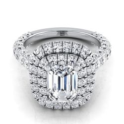 Platinum Emerald Cut Diamond Bold and Fancy Double Halo French Pave Engagement Ring -2ctw